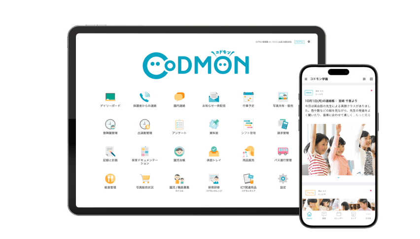 コドモンの導入で、先生はもちろん、施設長、主任、事務から栄養士に至るまで、あらゆる業務をスマートに取りまとめ。運営の大幅な省力化につながります。