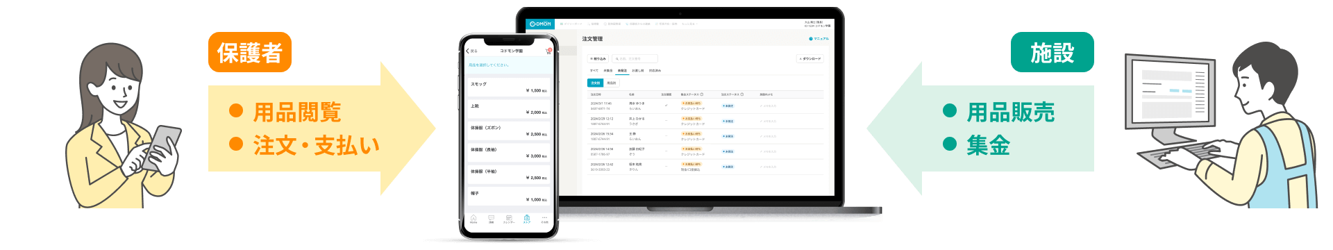 コドモンの用品販売では、施設専用の通販サイトを簡単に作ることができます。