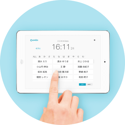 打刻と同時に登降園 / 入退室時間がアプリに記録され、クラス別の出席簿が自動的に作成されるので、園児 / 児童の出欠確認漏れなどのリスクを防ぎます。