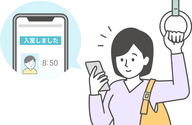 例えばおじいちゃんやおばあちゃんが送迎する場合にも、保護者に入退室の通知が自動送信されるため、職員の負担の軽減につながり、保護者も安心してご利用いただけます。